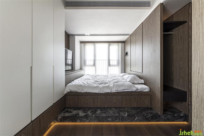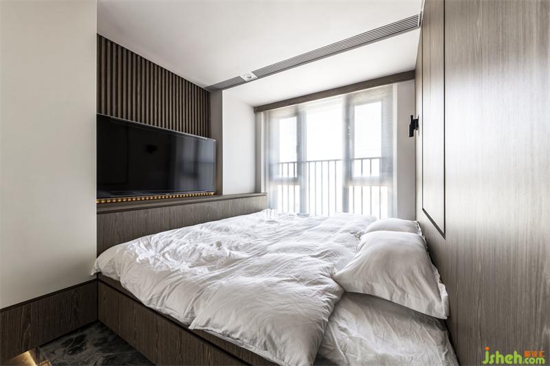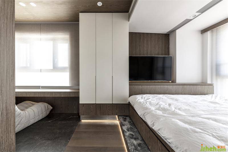 將空間利用率達到極致,主臥延續(xù)了寧靜的木色,營造靜謐的氛圍。整個空間沒有多余的裝飾,簡約質樸,窗戶透進陽光增添了空間的自然溫馨感。