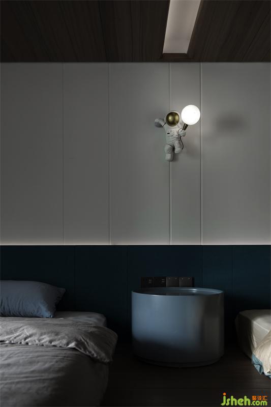 色系統(tǒng)一賦予臥室這個休憩空間更多的溫潤和舒適感,一盞極賦設(shè)計感的壁燈,柔和的燈光也打破整個空間的沉靜。次臥的設(shè)計以簡約為主,背景墻也是采用灰色藝術(shù)漆,刷半墻的設(shè)計豐富了空間線條,背景墻一盞木質(zhì)的壁燈,充分貼合睡眠環(huán)境。