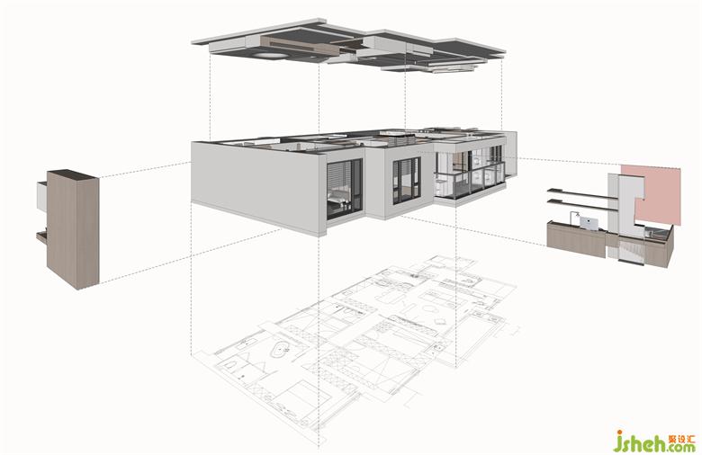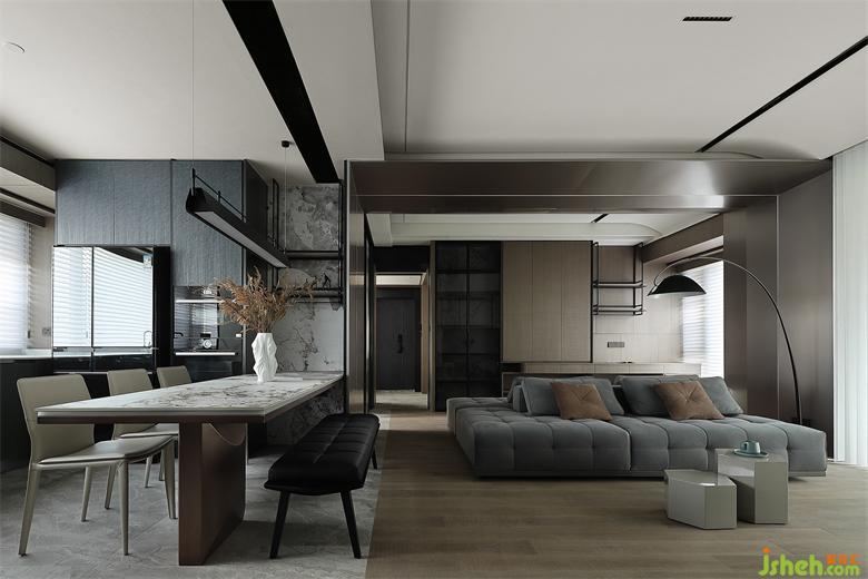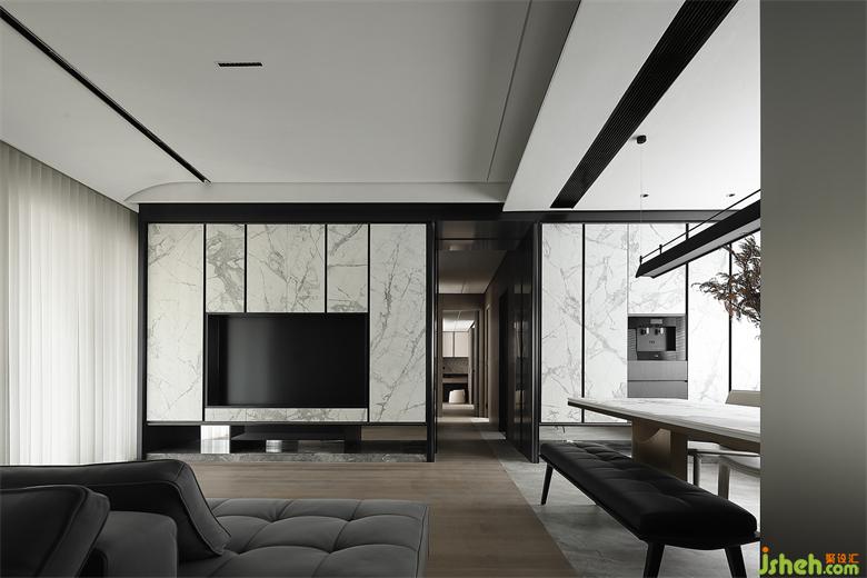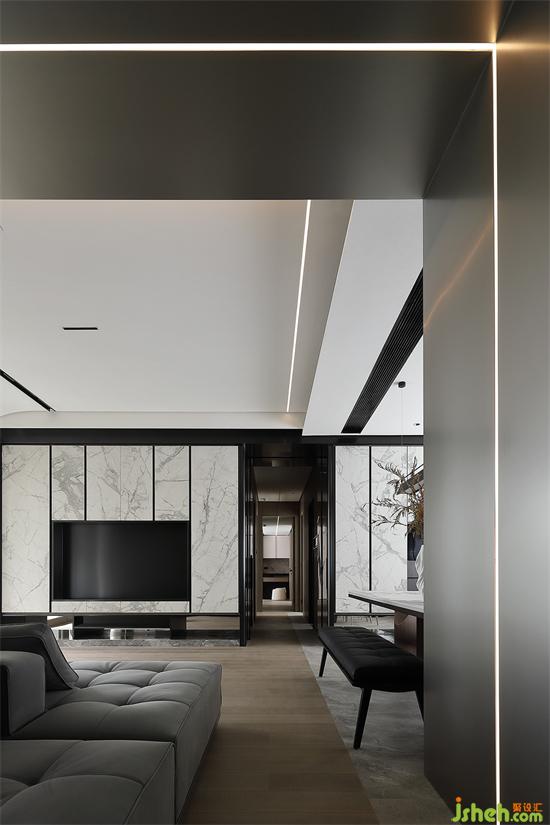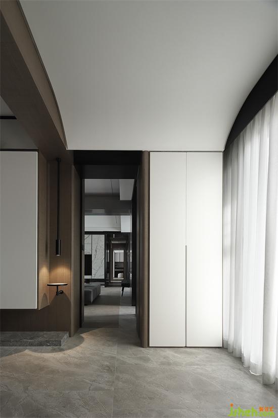 通過入戶沉降的方式將空間重組,一明一暗間,家裝設(shè)計(jì)在這喧囂城市之中,營造出了一個(gè)世外桃源般的愜意秘境。