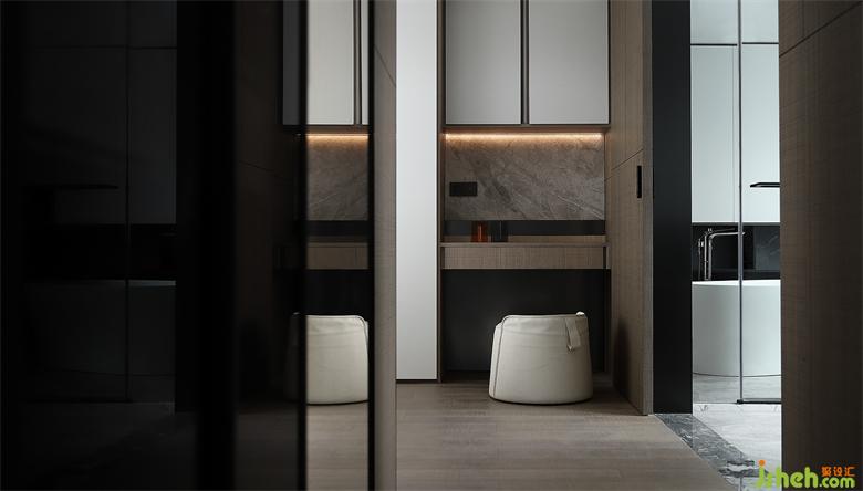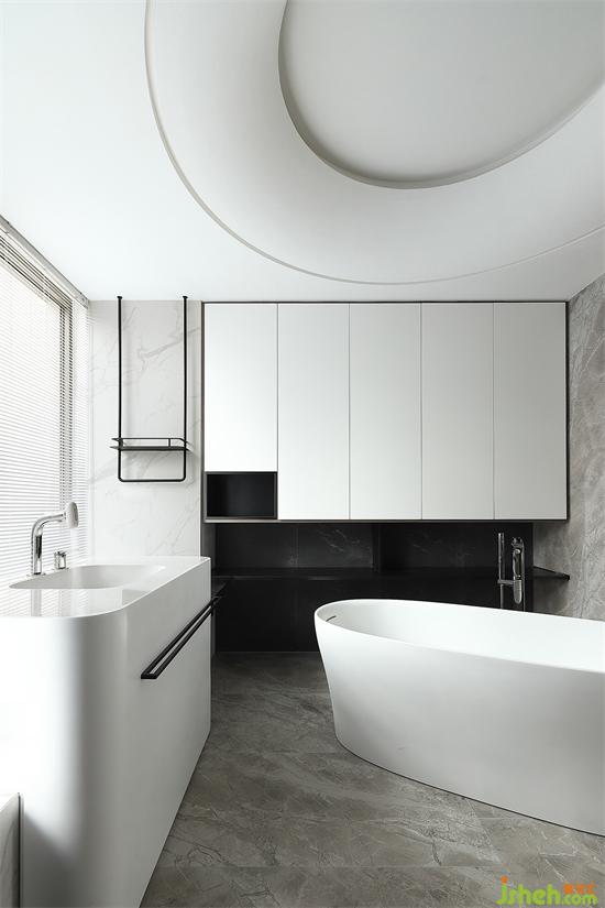 主衛(wèi)游離于自然介質(zhì)之上的弧形天花,構(gòu)造一種洞穴的有機(jī)感,充滿趣味性的水龍頭和洗手臺(tái)與天花構(gòu)造形成一種藝術(shù)的聯(lián)動(dòng),漂浮的大理石圓幾豐盈了客廳的時(shí)間感,家裝設(shè)計(jì)將質(zhì)樸的寧?kù)o與時(shí)間消逝的美留存于空間,通過(guò)設(shè)計(jì)營(yíng)造舒適安心的自然氛圍。
