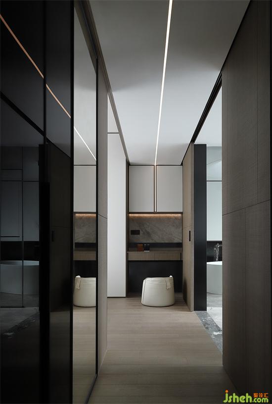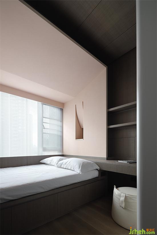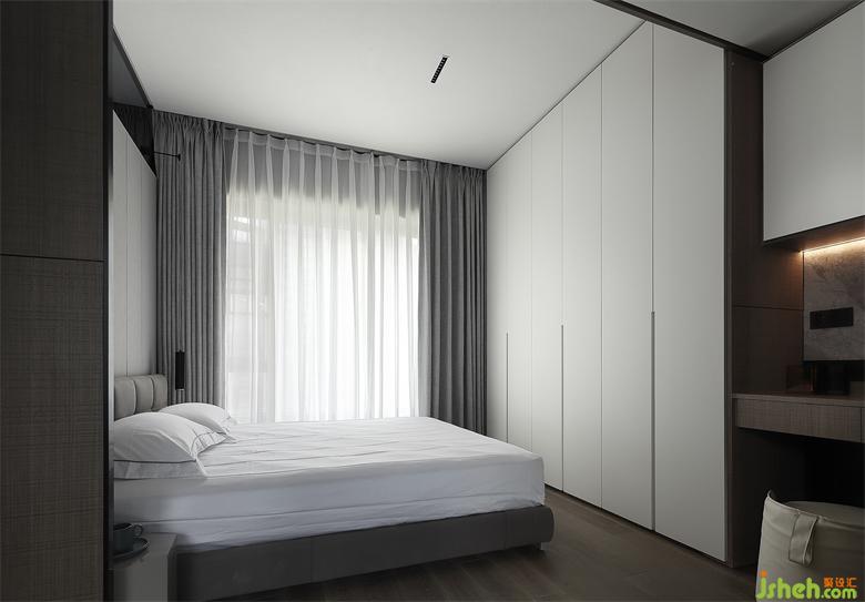 天然紋理與低調(diào)深色由外蔓延至臥室,令原有的平和氣息繼續(xù)為睡眠環(huán)境服務(wù),釋放單層疊加結(jié)構(gòu)的簡(jiǎn)約風(fēng)尚,導(dǎo)引居住者自然靠近床榻,家裝設(shè)計(jì)搭配星芒一般的光源,促使空間氛圍向寂靜之域沉淀,讓安全感與舒適感貫穿起居場(chǎng)景。