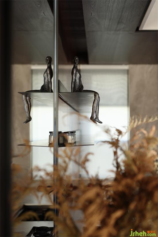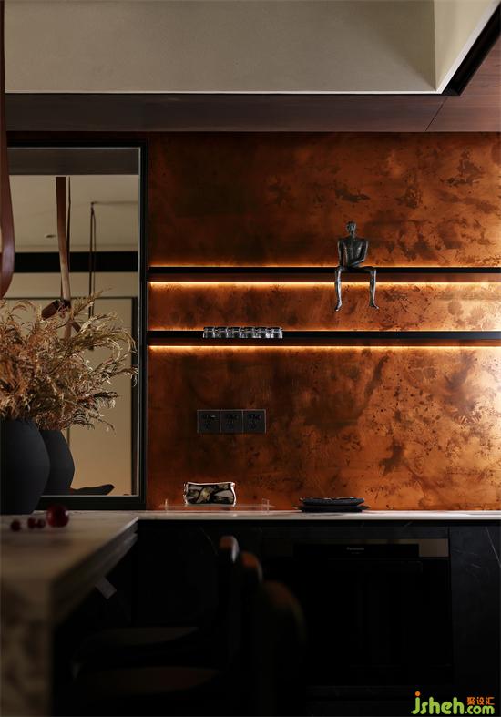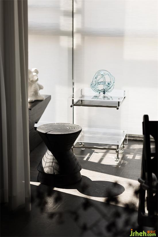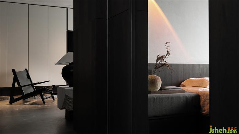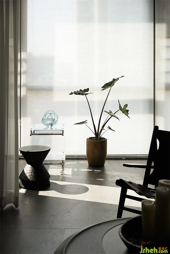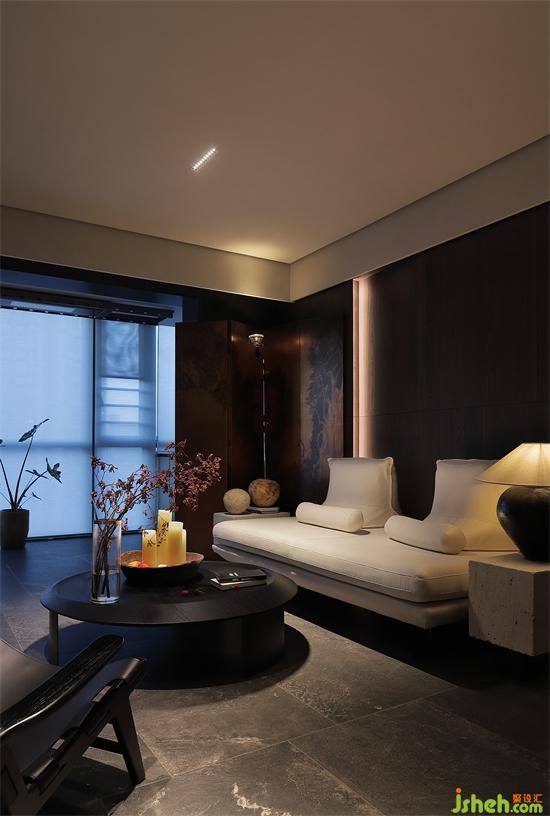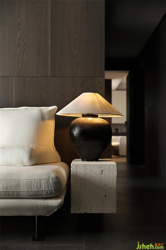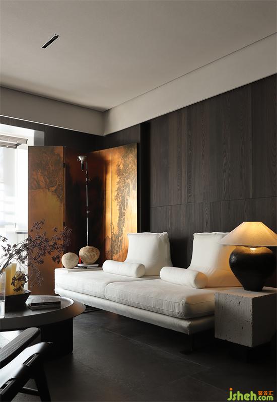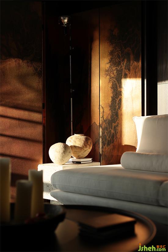 沙發(fā)背景墻是暗色的木,下午溫暖的陽(yáng)光透過(guò)窗戶,洋洋灑灑,讓墻面有了溫和的質(zhì)地。水墨畫(huà)的屏風(fēng)經(jīng)夕陽(yáng)的余暉有了不一樣的感官平衡,在整個(gè)暗色空間有些許的暖。家裝設(shè)計(jì)賦予了城市冷漠表象下溫柔內(nèi)心的完美詮釋。