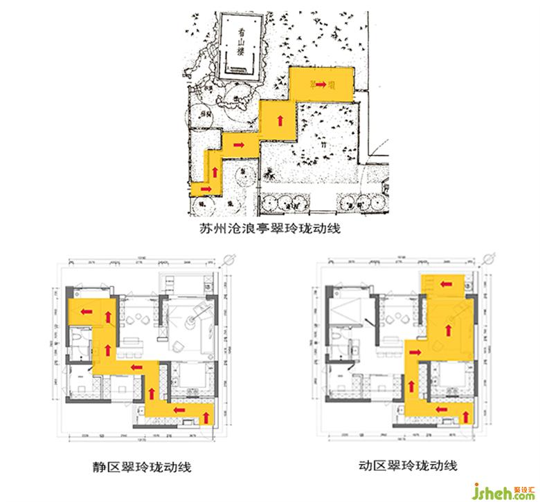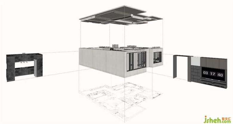 對很多人來說,翠玲瓏可能是一個意象,是透過勻質(zhì)花窗看到的滿眼翠竹。對我們來說,它是存在于宋代的一組空間結(jié)構(gòu)。家裝設計主臥的角落部分連接為每個空間都提供了最大的視野,每個房間都很正,連接在一起卻產(chǎn)生了曲折的體驗。