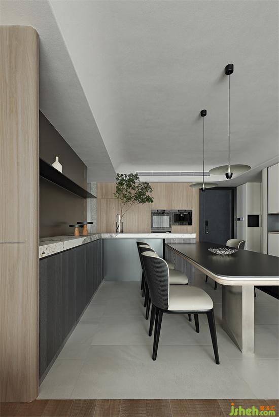 同家人享受用餐時間的相聚,家的溫度也在這種親近中慢慢升溫。在就餐場景的營造中通過冷暖材質的對撞奇妙的反差感為就餐增加了豐富的趣味性,各個空間中的功能復合又相互穿插,寶能城裝修設計通過使用場景交叉來豐富體驗感受。這就是設計傳情達意的溫度感受。
