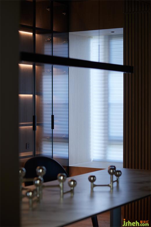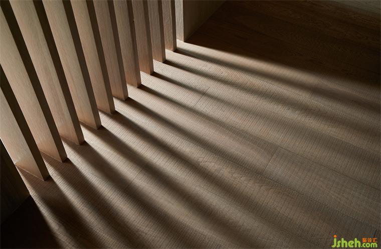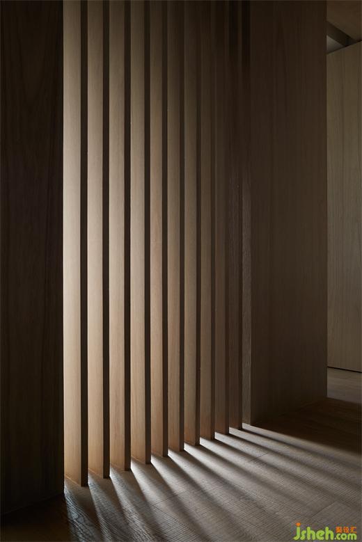 我們喜歡光,又喜歡靜謐的氛圍,屏風格柵區(qū)限定保護居住者隱私的同時,每條格柵迎著自然光,形成一種戶外的自然光感,如自然光影絢麗的灑下。