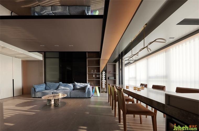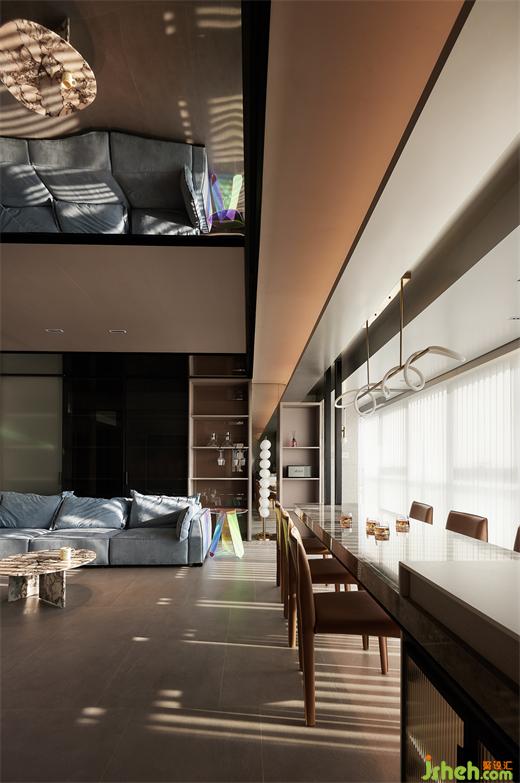 家裝設計為其提供了豐盈的容器通過下沉式的歸家儀式心境有了轉(zhuǎn)換的余地雙層功能空間的分割設計,在居住與分享間找到了完美的銜接??蛷d和餐廳保持獨立的同時互相依存。