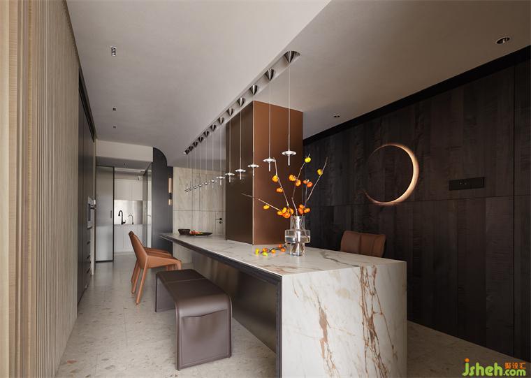豪宅設(shè)計以回型動線為核心凝聚功能,餐桌為客廳的中心,通透的一體化空間輔以質(zhì)樸的空間基調(diào),引光入室,探尋居住的本質(zhì),為業(yè)主提供真正意義上舒適、實(shí)用、現(xiàn)代的住所。