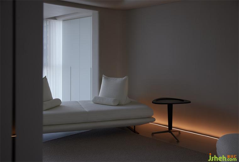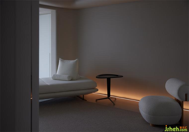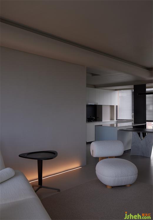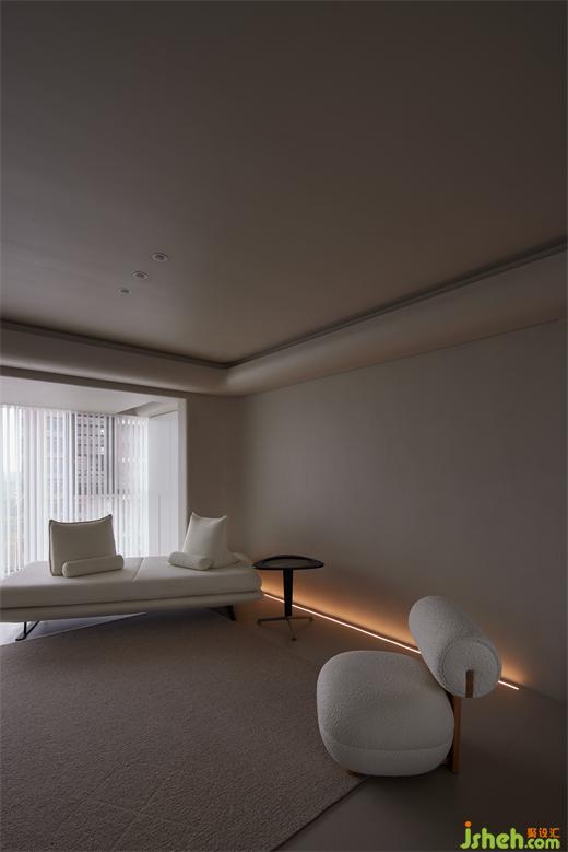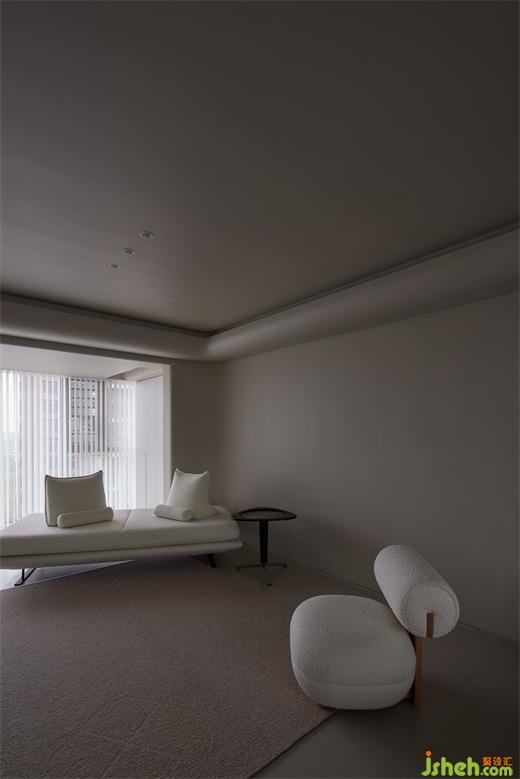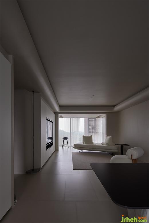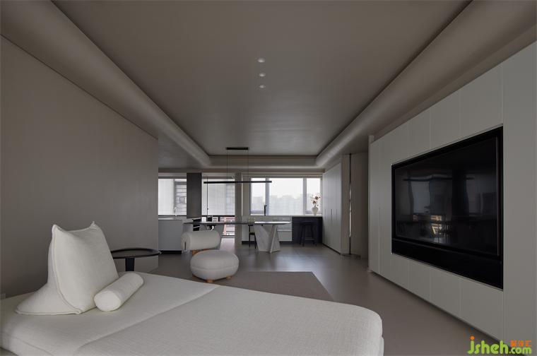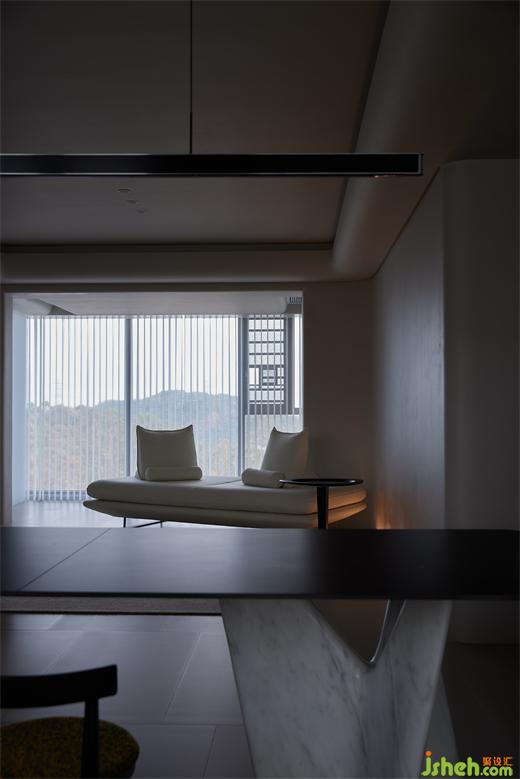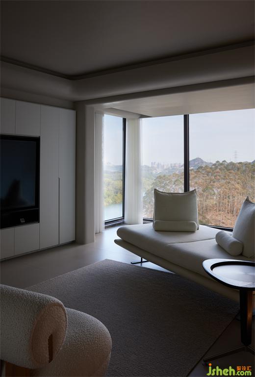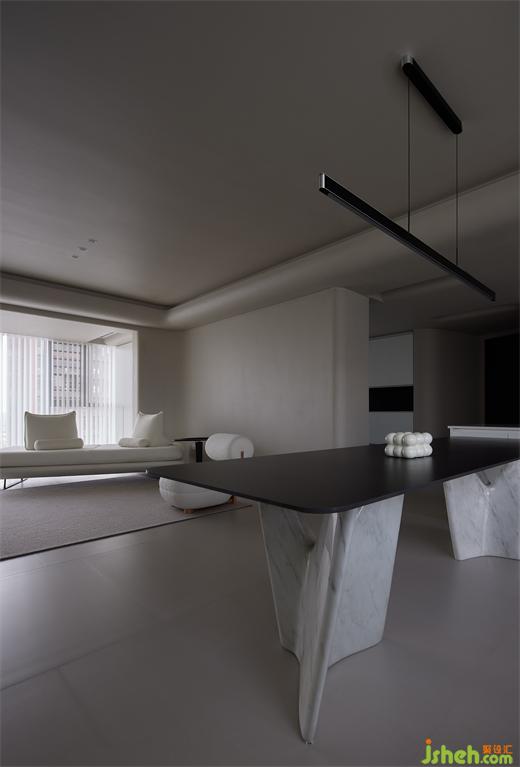 對一眼看到的視覺空間作重新梳理,去掉華而不實的裝飾,摒棄繁雜的圖像,使用簡潔的顏色和線條,去繁化簡,豪宅設(shè)計沒有多重材料的堆砌——在理性邏輯下的減法加持后,家空間成為了主人生活的空白畫布,空間也有了被收納的可能。這樣一來,目之所及,居室環(huán)境依然整體留白,窗外透入的自然景致也不會被室內(nèi)多余線條打碎,得以完整進入室內(nèi)。