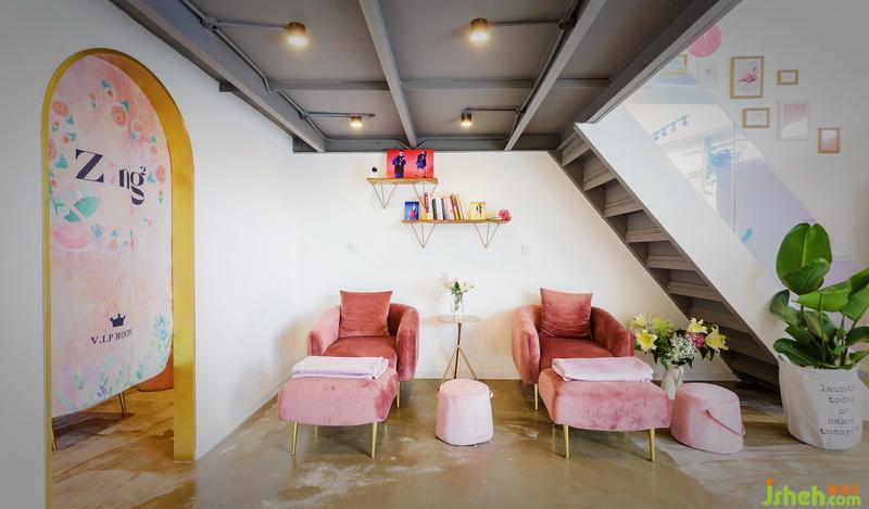 空間外,主要是以白色為主,點綴明亮的綠色和粉紅色,增加層次感,將店門店內以及房間內,做了一個顏色上的隔斷,讓客戶不會產(chǎn)生視覺上的疲勞。由于店里做的項目比較多,但是都想讓他們有個單獨的區(qū)域,所以設計師不會放過任何可以利用的空間,并且讓客戶感到舒適,保護客戶隱私。