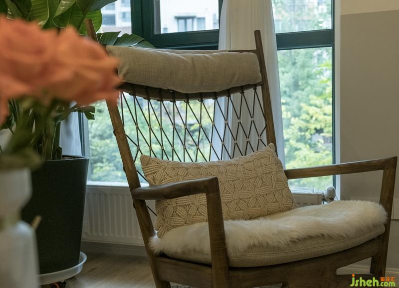客廳不大,也沒(méi)有做太大的變化,墻面采用的半墻處理,太滿則溢,過(guò)猶不及。上淺下深的半墻設(shè)計(jì),加深了墻面的層次感,同時(shí)也能拔高空間的層高。恰到好處的為單調(diào)的白墻注入了一絲新鮮的活力,不顯壓抑,卻又很大氣。在角落擺放旅人蕉,讓整個(gè)空間也充滿了生氣。能想象出,若周叔叔在沙發(fā)上看電視時(shí),偷偷注視著在搖搖椅上看書(shū)的熊阿姨,而此時(shí)熊阿姨也注意到有人盯著她看,便抬頭相望,卻剛好與周叔叔四目相對(duì),二人微微一笑的場(chǎng)景。