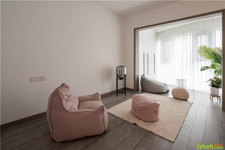 主臥室仍然延續(xù)了拋棄無用細(xì)節(jié)的極簡之家概念,少量的陳設(shè)降低了物質(zhì)帶來的束縛之感。燈具沒有懸掛在房間頂部,而是出現(xiàn)在房間的一角,產(chǎn)生一種浪漫的光線走向。