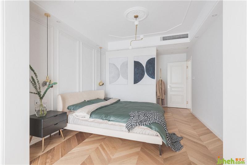 業(yè)主長時間在外,所以在家的顏色搭配上希望可以暖一些,因此整體房間的色彩搭配,以大地色系作為主色調(diào),綠色為點綴色,空間的材質(zhì)主要以白墻和原木色系木地板為主,讓整個空間清爽整潔。