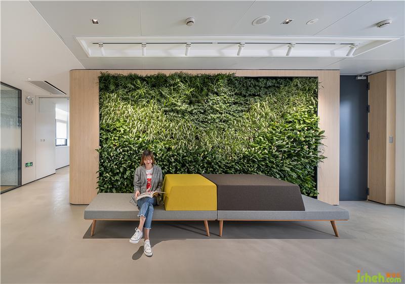 受益于大樓的自然光線及集成水循環(huán)系統(tǒng),綠植墻的設(shè)計(jì)將真實(shí)的綠色植物引入室內(nèi),事實(shí)表明自然植物對(duì)員工的精神狀態(tài)及疲勞恢復(fù)都有正面的影響