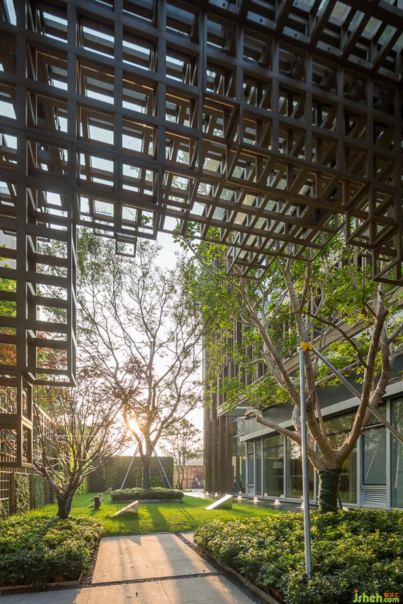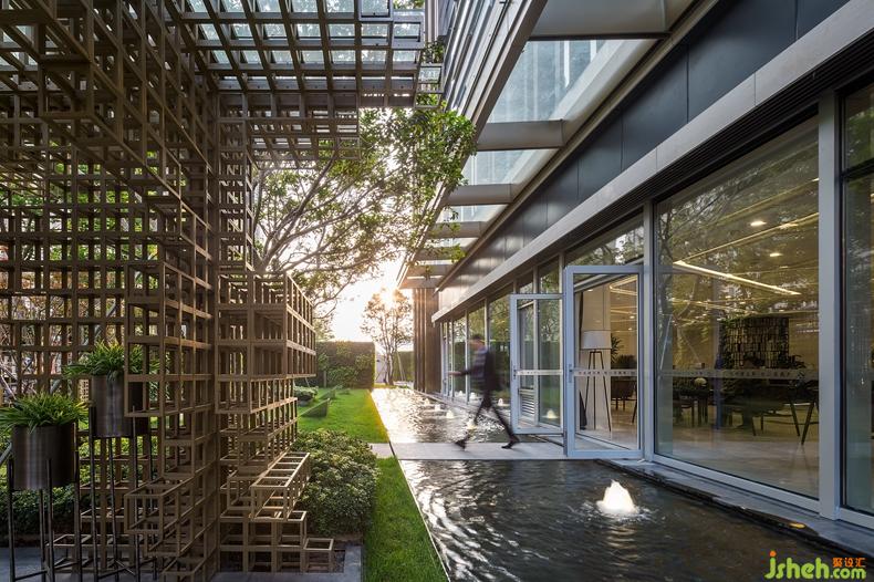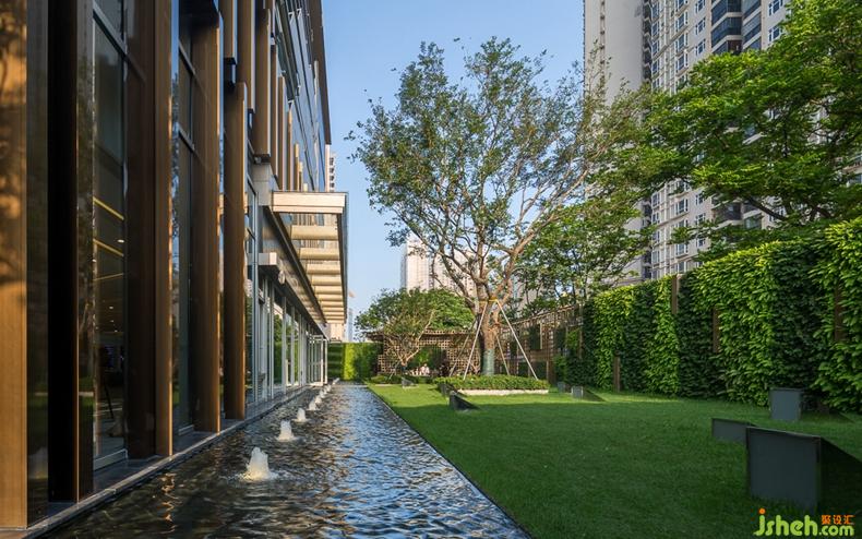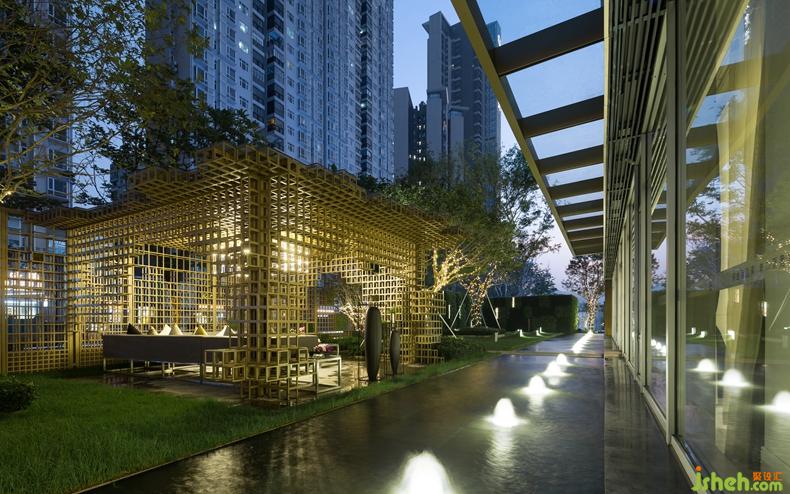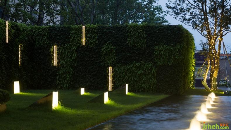 連綿的地景,搭配輪廓分明的音樂草地?zé)?,設(shè)計(jì)公司通過這些簡(jiǎn)單而微妙的關(guān)聯(lián),與整體設(shè)計(jì)元素相呼應(yīng)。綠植墻的設(shè)計(jì)讓綠在立面上得以延續(xù),塑造出了空間的多維層次感。