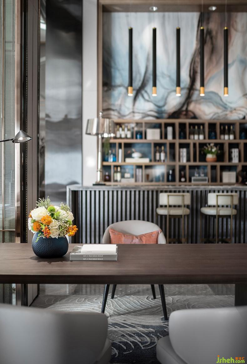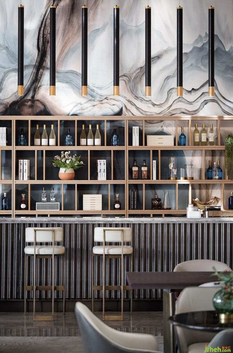 水吧臺(tái)背景墻疊景設(shè)計(jì),活化空間體驗(yàn)極具靈氣,賦予空間清新時(shí)尚又不失溫潤(rùn)細(xì)膩的縱深體驗(yàn).