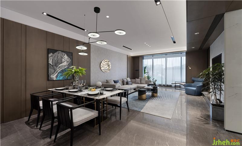 室內(nèi)建筑化的設(shè)計(jì)手法,樣板房設(shè)計(jì)使空間更具有立體感,啡色的大理石地面,深褐色木質(zhì)配搭,米灰色沙發(fā)及極具奢華質(zhì)感的古銅鑲嵌,為空間渲染出沉穩(wěn)的基調(diào),煥發(fā)靜謐的氛圍。構(gòu)成了一幅品質(zhì)感十足的空間畫面。整個(gè)項(xiàng)目,不同的空間需求展現(xiàn)了各具特色的氛圍,契合人類情感的變幻,帶來(lái)精神層次的對(duì)話。