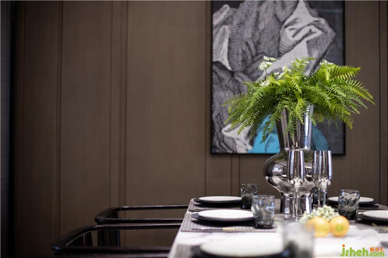 人創(chuàng)造了空間,空間反哺于人,餐廳區(qū)通過(guò)兩扇玻璃門將光線引入室內(nèi),同時(shí)也將儀式感端上餐桌,營(yíng)造舒適的用餐氣氛,舒暢人的心靈。