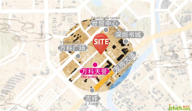 項目位于龍崗中心區(qū),萬科天譽(yù)Ⅱ期東南角,裝修設(shè)計屬于萬科天譽(yù)城市更新項目的一部分;東臨天譽(yù)實驗學(xué)校,北接是萬科廣場。