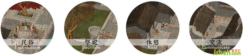 The ancestral halls in the base are relatively independent, while the utilization rate of public space is low, lacking of the environment atmosphere.