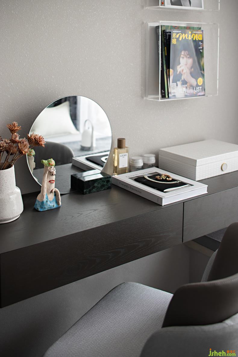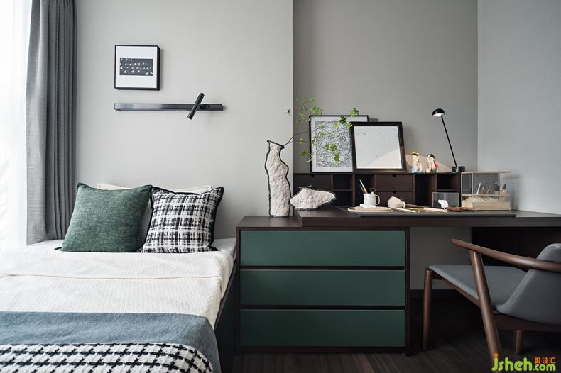 煙火成書,同時(shí)也記錄著關(guān)于愛情的幸福模樣,家的理想狀態(tài)在于塑造生活的儀式感,灰調(diào)的沉穩(wěn)優(yōu)雅搭配墨綠的開闊調(diào)色,讓生活的旋律在主臥的極致中更像一場(chǎng)田野的漫步,讓愛手牽手的蕩漾在感性與理性并存的搭配之間,溫暖治愈,余韻悠長(zhǎng)。