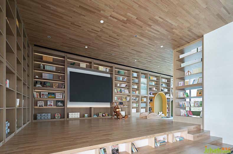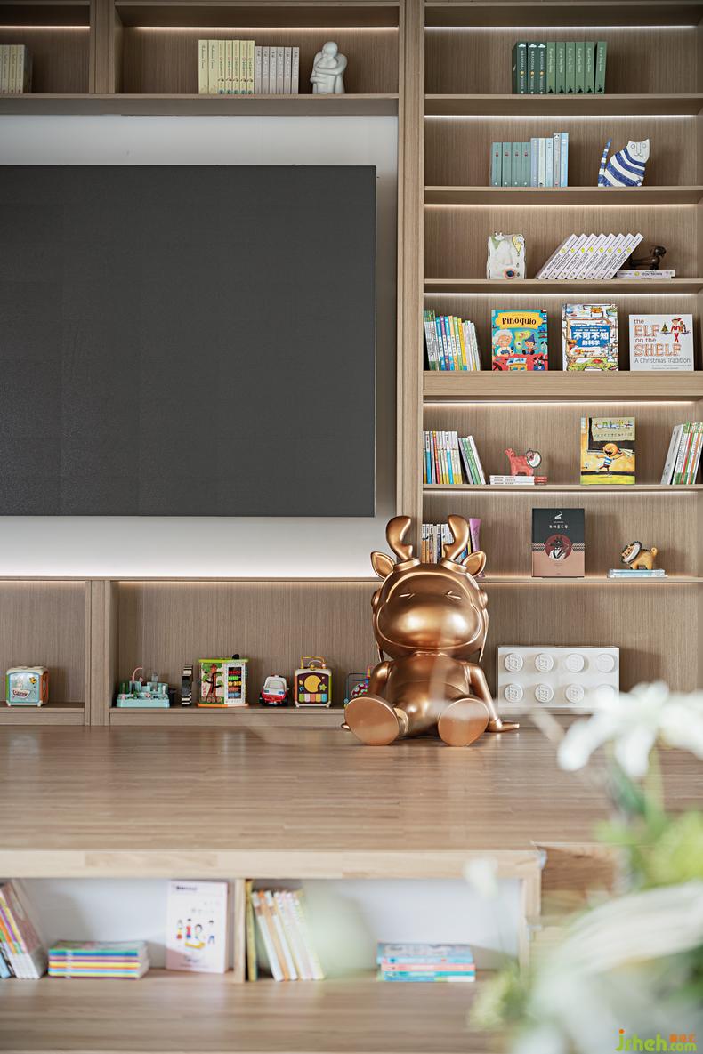 童趣天地丨 大落地的階梯狀布景和整面墻的置儲設(shè)計,搭配著原木色調(diào)的純粹,樣板房設(shè)計給這一處屬于孩子的世界寄予了無限的生機(jī),書、畫、手辦足以讓童趣無限延展,仿佛一個童真博物館,讓溫暖與快樂在這里傳遞。