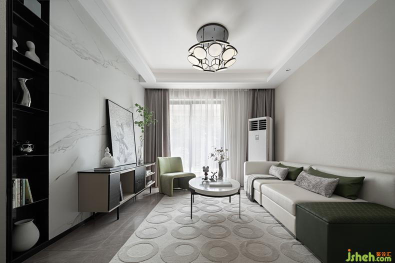本案簡潔干凈的線條勾勒整體框架,并以包容度高的白色、淺灰為基底,軟裝點綴橄欖綠色及少量的紅色調(diào),自由沉靜的和諧美感。