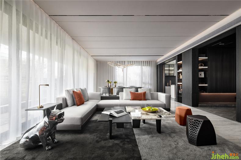 米白色與日光暖暖,極簡個性的茶幾線條極具現(xiàn)代設(shè)計感,藝術(shù)配飾在空間中起到調(diào)和的作用,室內(nèi)設(shè)計師使整個空間相對柔和,木紋、皮革、水晶的組合讓觸感在輕盈與厚重間呈現(xiàn)平衡美感。