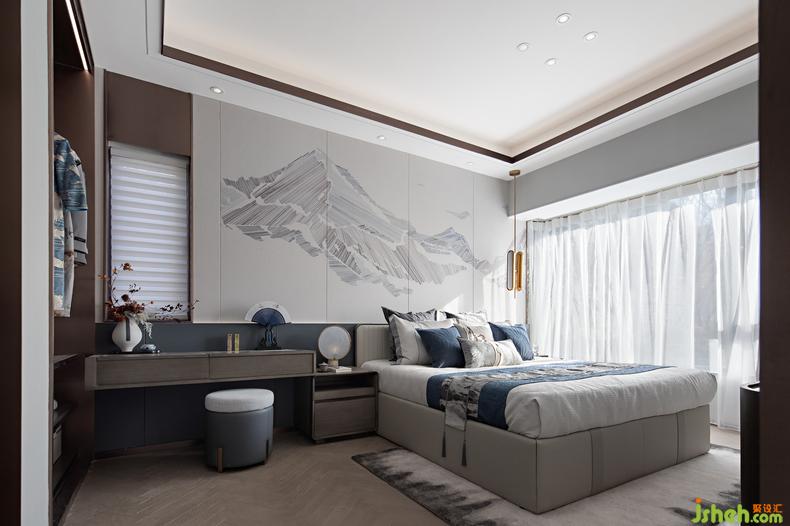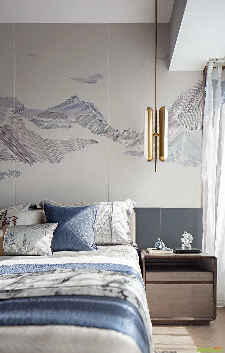主臥丨用中式畫筆表達的山景鋪墊著返璞歸真的氛圍,柔和雅致的家居配飾,樣板房設計不顯山不露水,如文人墨客般儒雅、內(nèi)斂,線條渾然天成,氣韻生動,展現(xiàn)東方生活方式的雍容大氣。