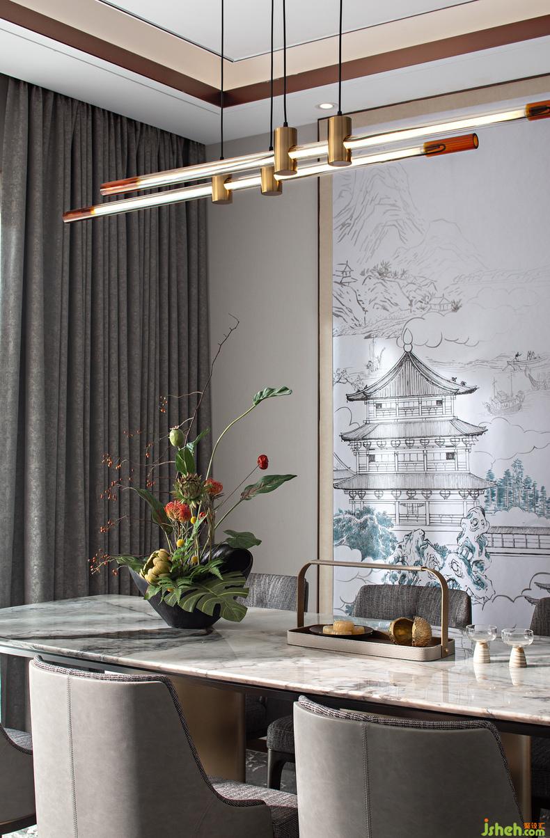 餐廚空間丨用最簡潔的設計語言來營造一個“飲食”的美好空間,以中式韻作為媒介,樣板房設計在日光下,透露出清雋的文人氣質(zhì),也充滿了家的味道。