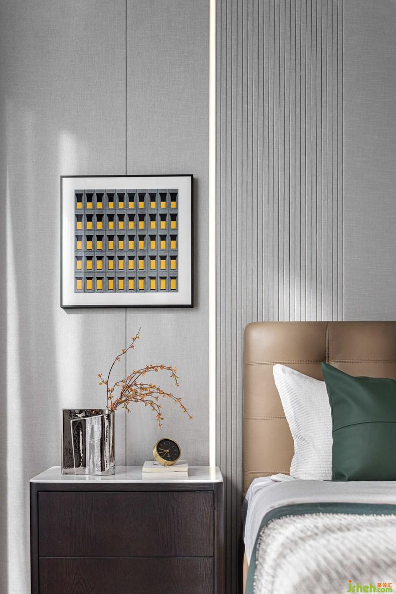 主臥丨框架之外、格調(diào)之內(nèi),含蓄的色調(diào)與氛圍,溫馨自處,室內(nèi)設(shè)計(jì)師藝術(shù)掛畫與插花呼應(yīng),不著痕跡地將生活狀態(tài)與精神氣韻銜接融合,其他的留給陽光和時(shí)間賦予空間生命力。