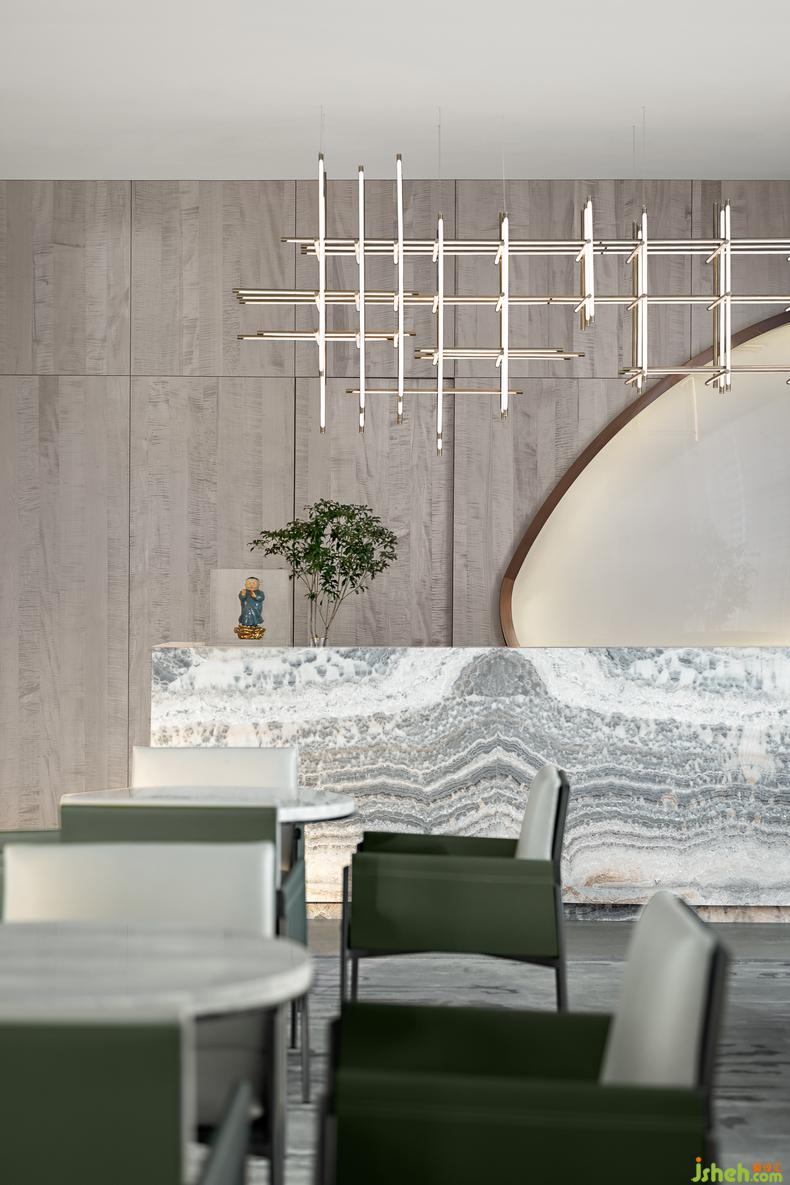創(chuàng)作暖場區(qū) 丨流浪的線條在此找到歸宿,大面積的灰色與清新溫柔的綠調(diào)在空間內(nèi)游弋,裝修設(shè)計百葉窗環(huán)繞玻璃立面,陽光見縫插針的撒進(jìn)來,一旁的長桌上擺放的香薰器物,此刻的你,可以窩在沙發(fā)里享受閑暇,也可以擺弄時光。