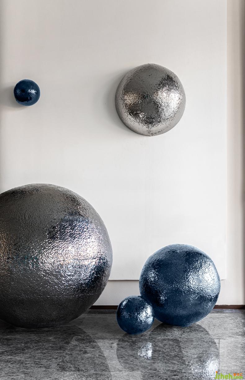 前廳雕塑丨 融入氛圍的藝術(shù)裝置一直是加法的呈現(xiàn),「圓」的融入似標(biāo)點(diǎn)、室內(nèi)設(shè)計(jì)師似水滴、似科技光點(diǎn)、似宇宙星垂,帶著刻度和肌理,透過(guò)開(kāi)闊明亮的空間展陳,打破藝術(shù)矩陣的邊界,讓空間的趣味性和探索性恰到好處。