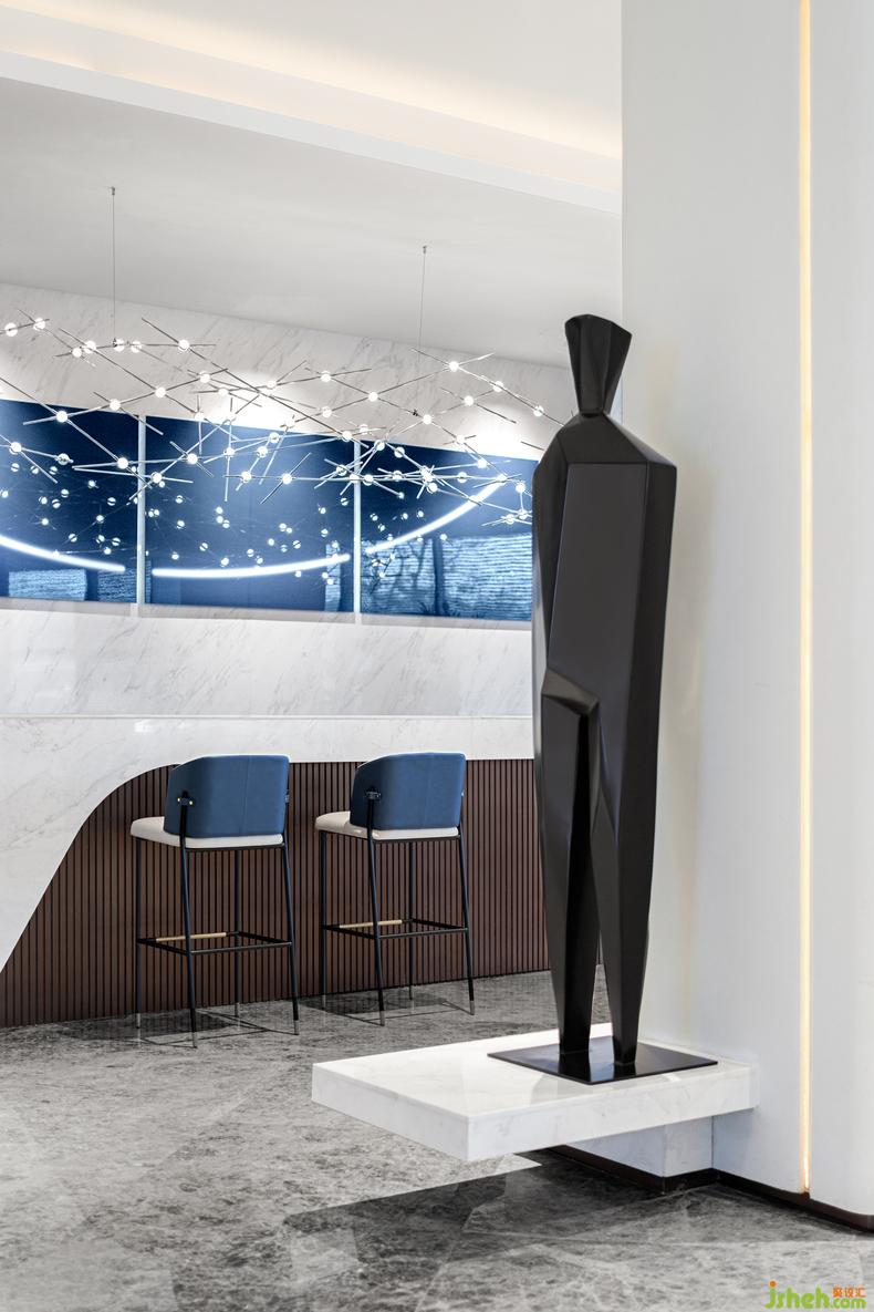 水吧區(qū)丨 重組和煥新式空間敘事梳理流線的關(guān)鍵,室內(nèi)設(shè)計師水吧空間的剛?cè)嵬瑯?gòu)讓視野更加聚合,明快的浩瀚藍(lán)勾描著未來的體驗(yàn)感,豐富交織的縱貫頂燈,彼此疊置融合,串聯(lián)交互,更衍生出序列的體驗(yàn)感,讓寰宇滲透進(jìn)可塑的空間體量中。