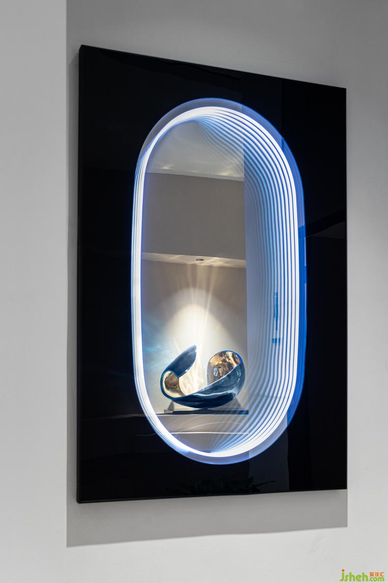 裝置丨 如聲波、如星跡的自然起源與再現(xiàn)的的形態(tài)裝置,如同能量的嵌入,室內(nèi)設(shè)計師將未來的動態(tài)體驗(yàn)滲透在視覺軌跡之中,用光影的結(jié)合構(gòu)建光速的快與慢、溫柔和動感,穿透它的視野,更如一副直擊心靈的作品,演繹著科幻世界的“光與空間”。