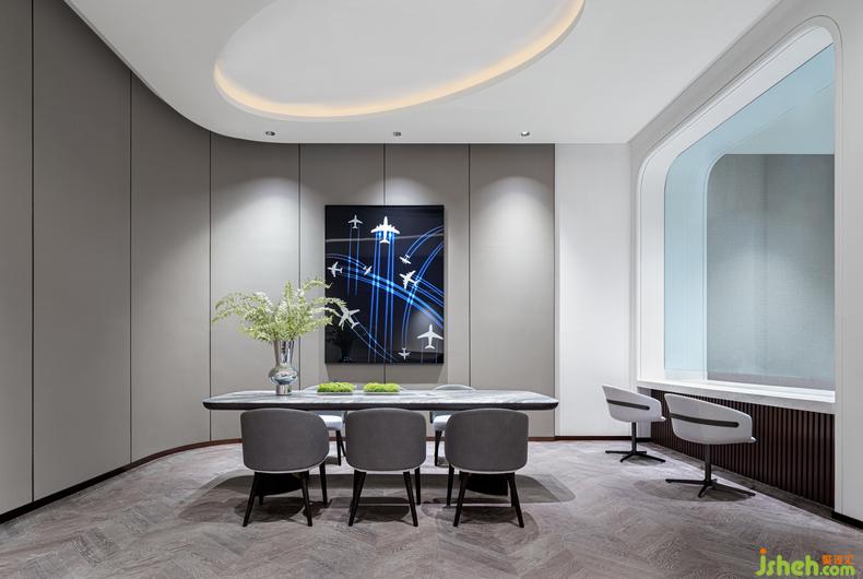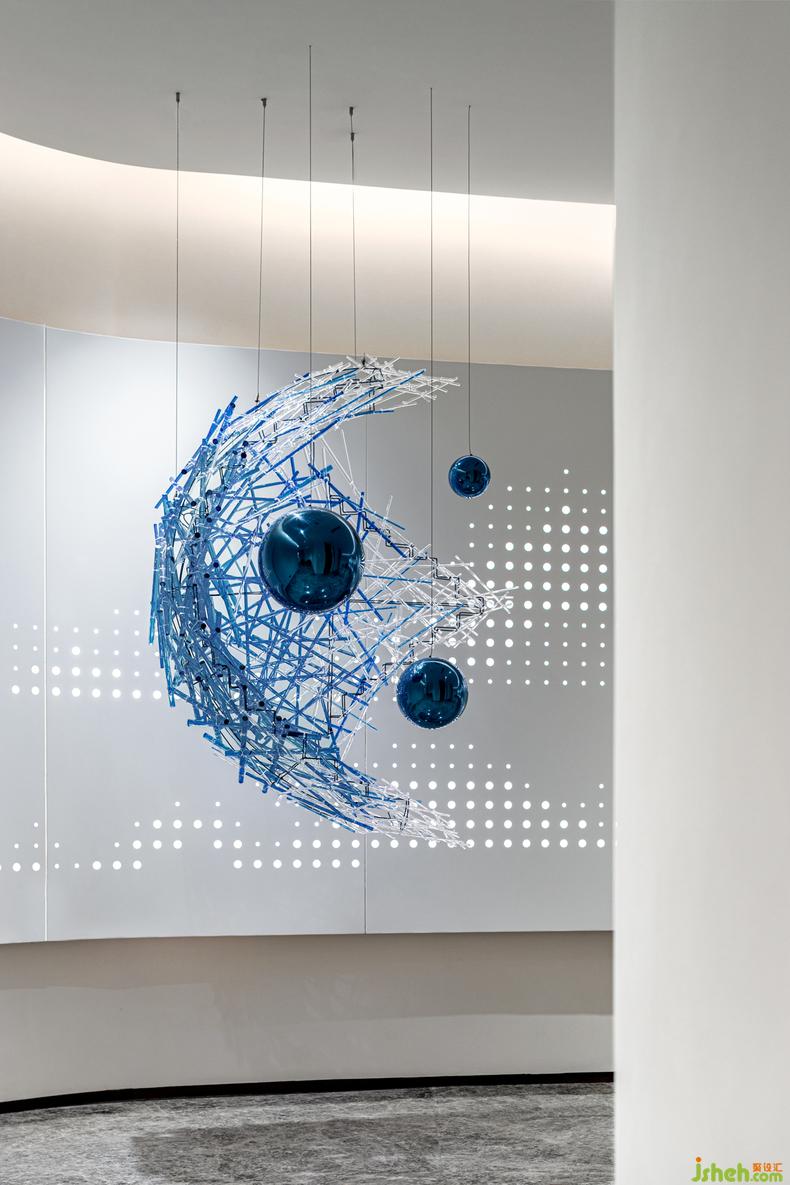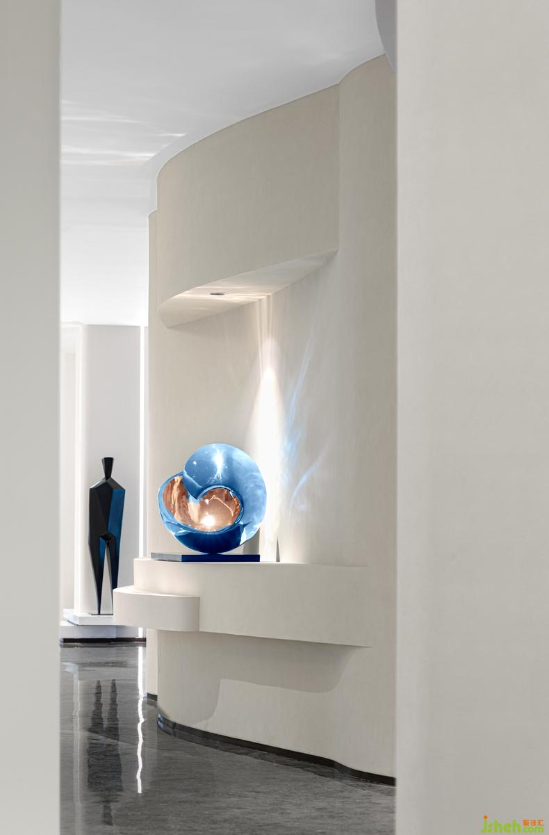 走廊丨 動線的流通總是可以成為契機(jī),來激發(fā)更多能量的釋放,室內(nèi)設(shè)計師一處流線波紋的創(chuàng)意靈感,透過視野的角度呈現(xiàn)自由的變幻,自身的蔚藍(lán)的光影配合光源的反射,讓體驗(yàn)更加豐富、真實(shí)和多元。