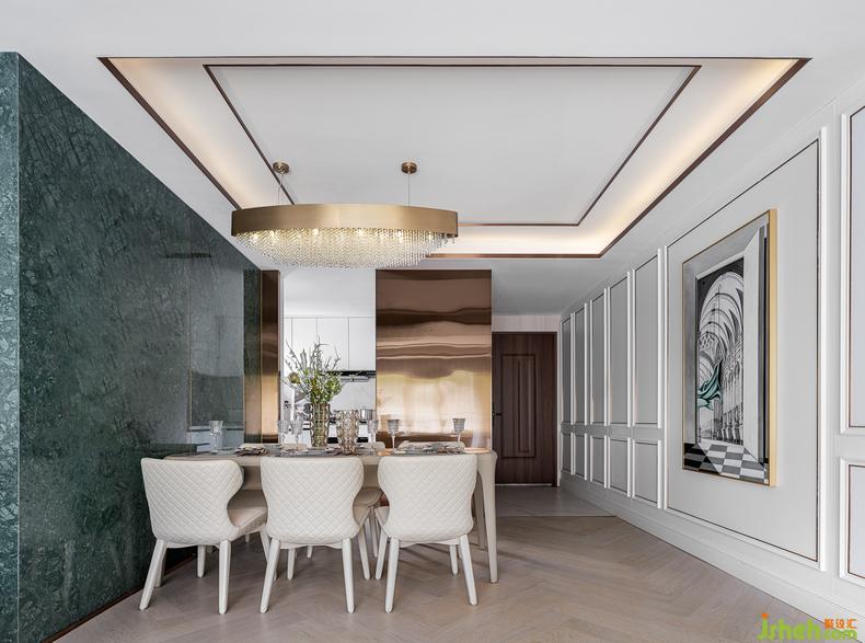 對于餐廳氛圍的設計,采用了體驗與深度的融合,室內(nèi)設計師含蓄內(nèi)斂的寶石綠給人以生機盎然的自然靈動,搭配鎏金配色的頂燈、杯皿、餐具,讓就餐擁有極盡絢爛的樸素和張揚驕矜的氣質(zhì)。