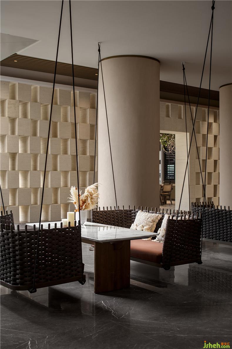 咖啡茗茶 休閑 對話 | 一隅好的休憩空間設(shè)計是將靈活的組合兼具功能和舒適性,售樓處設(shè)計讓享受成為超越時間的停駐,素米白與啞光黑的色調(diào)搭配,輔以點綴呼應(yīng)的植被綠,沉穩(wěn)之中不乏年輕朝氣。吊籃式的咖啡桌椅設(shè)計更詮釋著創(chuàng)意的巧妙構(gòu)思,讓空間氛圍不拘泥在常規(guī)的餐飲,而是一場放空身心的愜意。