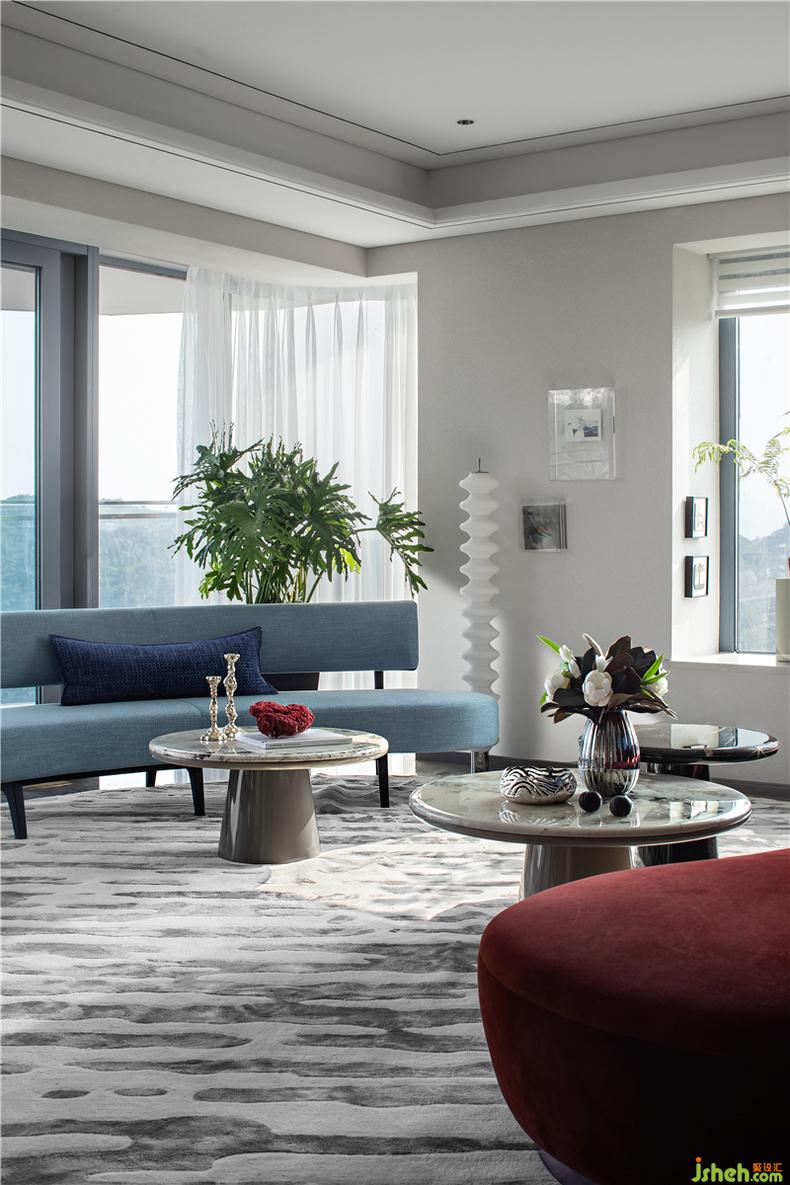 熱烈的紅,淺海的藍(lán),桌幾的雅,配飾的藝,在雙敞的空間布局疊加了創(chuàng)意的寫(xiě)意,搭配著光影的暖調(diào),線條的唯美,地毯的肌紋,綠植的舒展,如同在海灣度假一般,無(wú)不譜寫(xiě)著海景大宅的閑適與時(shí)光的漫游。