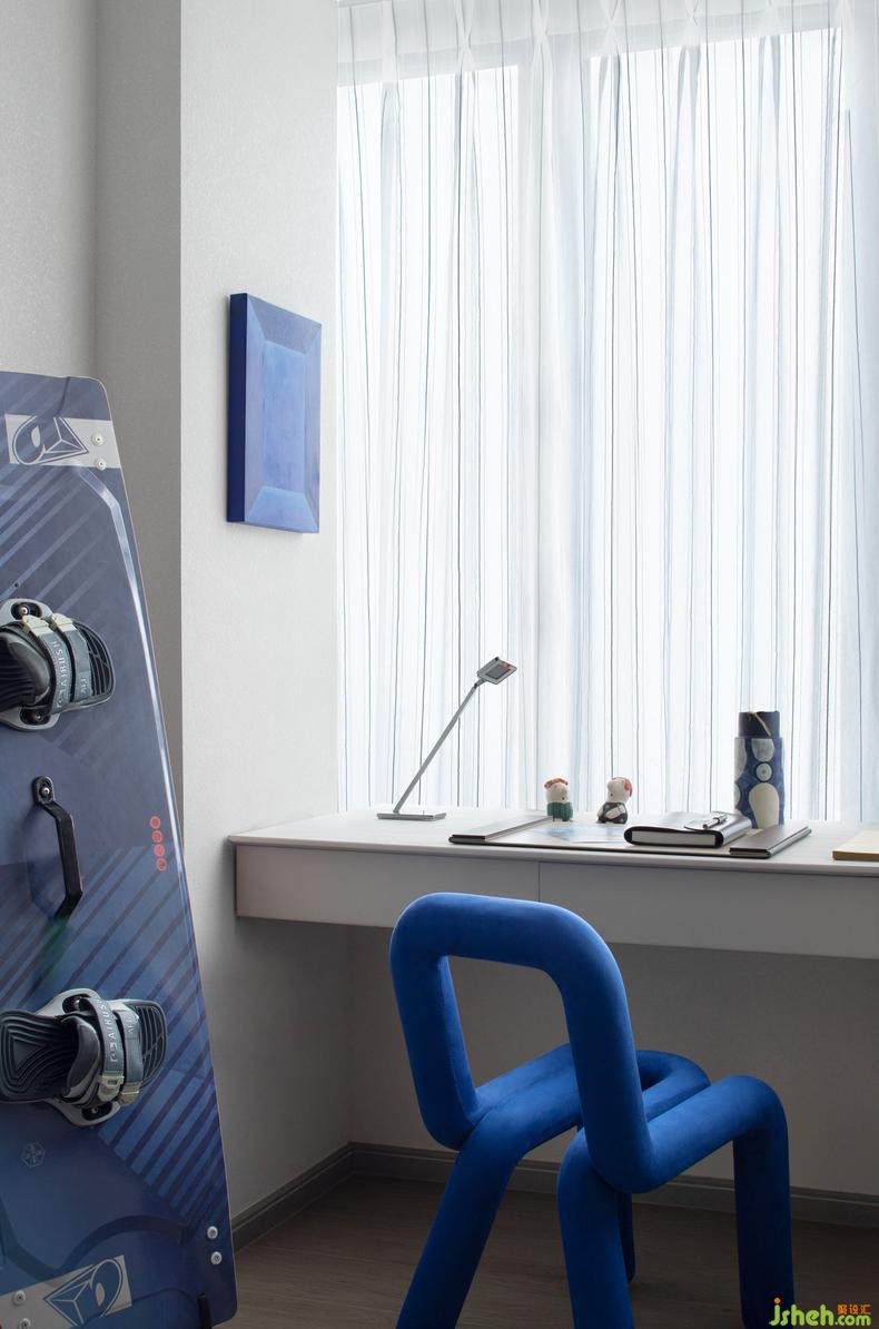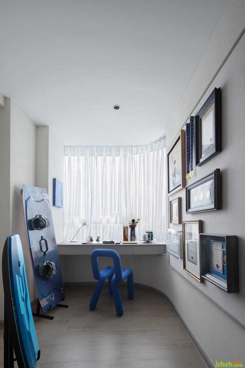 這個(gè)空間承載他成長(zhǎng)中所有的美好瞬間,售樓處設(shè)計(jì)滿墻的榮譽(yù)背后是說(shuō)不完的故事,左上角的掛畫是爸爸的插畫師朋友畫的沖浪的他;鯨藍(lán)椅旁放置著他最愛(ài)的沖浪板,那是他12歲時(shí)奪冠獲得的獎(jiǎng)品,空間里處處都彰顯著屬于小主人的個(gè)性,在生活之上用熱愛(ài)豐滿人生的意義。