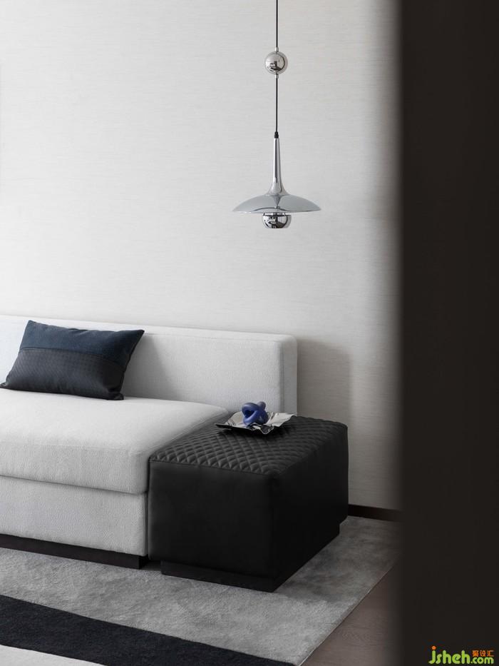 客廳丨黑與白的極致視覺,像是對建筑的干預(yù)中加入空間和繪畫的體驗(yàn),讓感官超越物理限制,在抽象的維度里解放個性的多元,如同連接了二維與三維世界,讓維度的界限消散在空間里,給生活變幻的體驗(yàn)