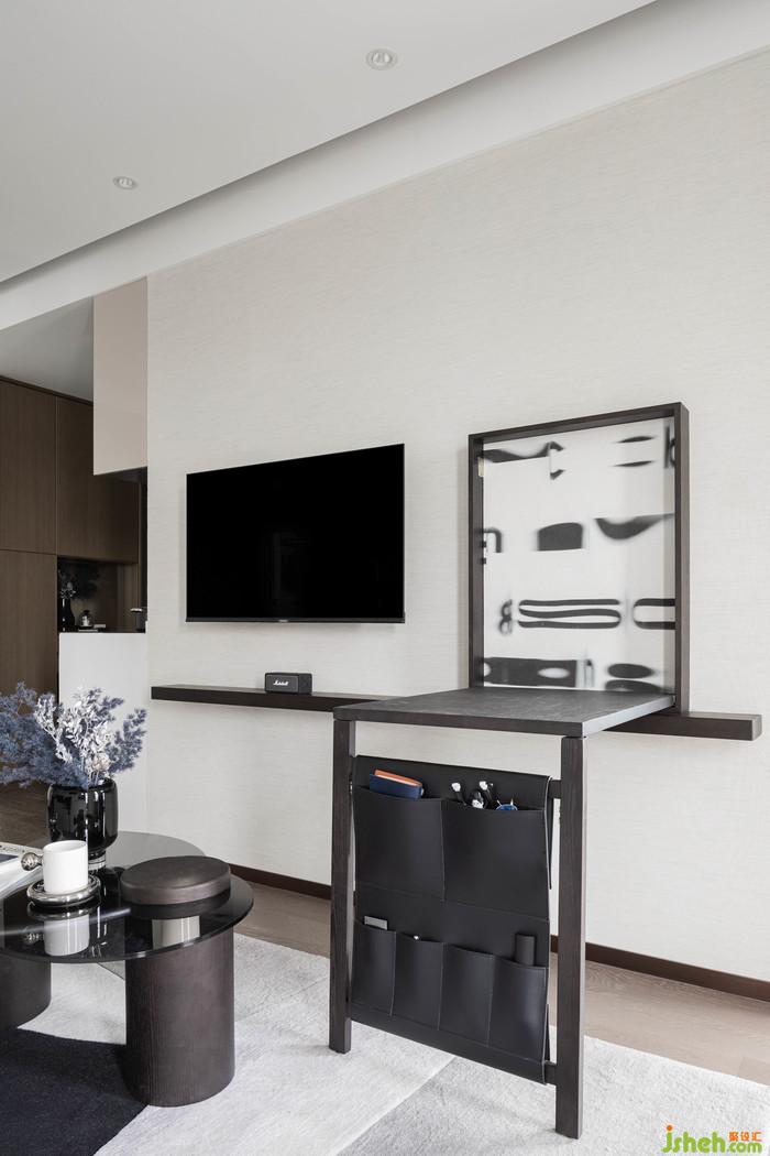 客廳丨功能的應(yīng)用同樣在客廳的區(qū)域里創(chuàng)意盡顯,組合的體塊、視覺的秩序、對比的色度和變換的尺度,模糊了閱讀區(qū)與客廳空間的界限,一張隱藏式的折疊桌幾,讓生活的樂趣無限,如同享受一場突破次元壁的實(shí)驗(yàn)。