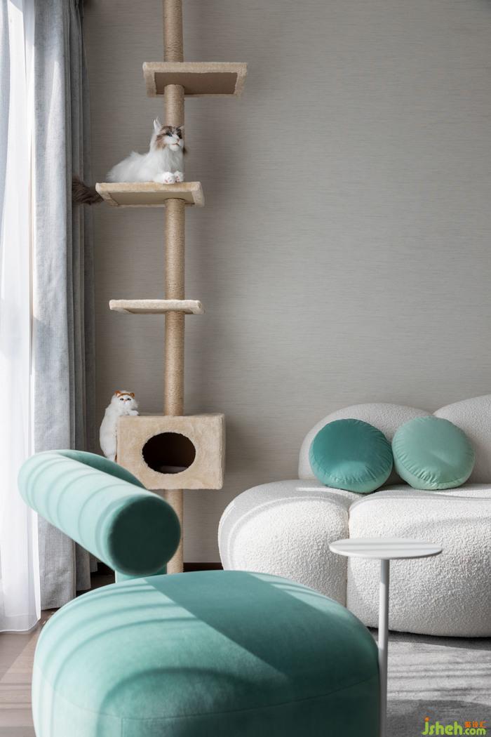 客廳丨一個(gè)屬于寵物愛(ài)好者的客廳空間,樣板房設(shè)計(jì)是柔軟且足夠生動(dòng)有趣的,素雅的色調(diào)讓看似簡(jiǎn)單的架構(gòu)更添了幾分靜謐的高雅,光與影的鋪陳讓視野的角度更加多維和通透,不管是湖藍(lán)的配色還是木科植被的潤(rùn)染,都讓這一處屬于主人與寵物互動(dòng)的場(chǎng)所,充滿鮮活的靈感.
