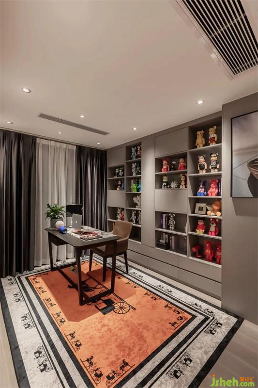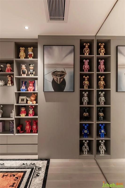 書房柜體內(nèi)部根據(jù)玩偶的大小定制了不同尺寸的隔板,配合適宜的燈光,一處絕妙的“收藏圣地”成為這個家最獨特的標(biāo)志。