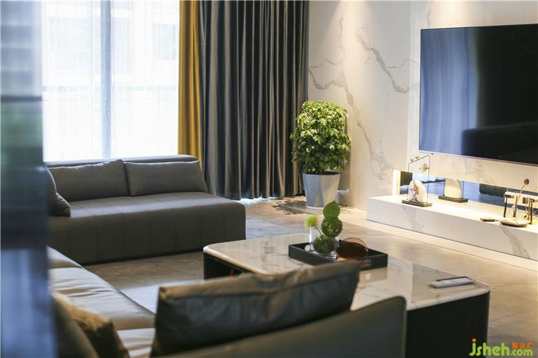 軟裝配飾在空間上起到了很大的作用,簡潔的沙發(fā)背景,不同色的抱枕和綠植,讓整個客廳不會顯得單調(diào)??傮w上給人一種自然簡潔,和諧寬敞的感覺。