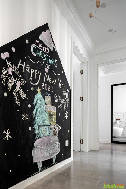 一個人最開心、最無憂無慮的時候,那大概就是在孩提的時候吧。拋開大人們的想法,根據(jù)小孩子的喜好,創(chuàng)造一個獨一無二的童年生活。小小的黑板墻,上面涂鴉著孩子與媽媽一起完成的作品。