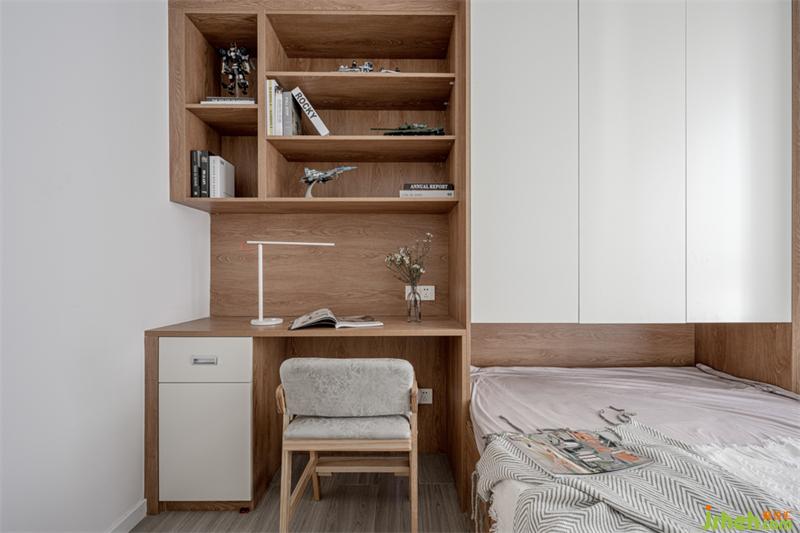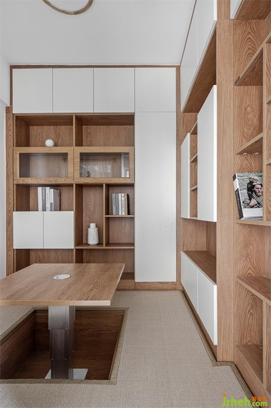 想要一個獨立的書房,能夠靜心工作、學習。榻榻米的形式,讓空間實現(xiàn)最大化的利用。寬大的工作臺,這是男女主人工作、學習的獨享柔時光地方。