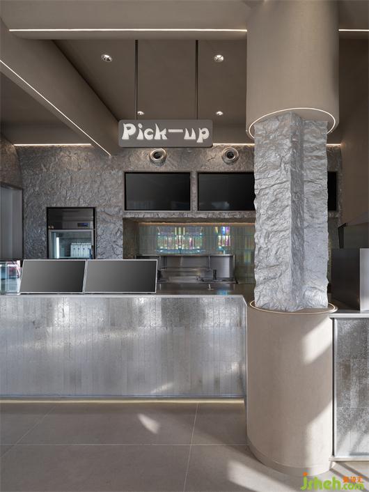 The wall in food court is simple and unadorned. The intervention of light and shadow broke the boring tone. Under the indirect light shading, the texture looks delicate and exquisite with the reflection of stainless steel, endowing visitors a feeling like recover their original simplicity.