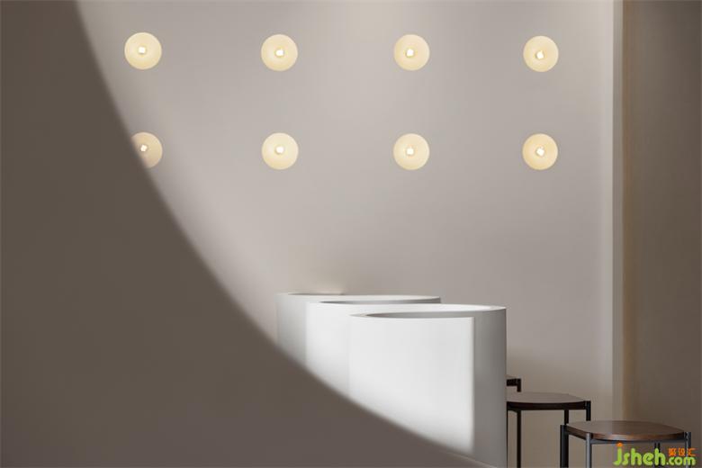 The matrix of modeling lamp based on cell particles is orderly distributed on the wall, presenting an extremely simple aesthetic feeling between virtuality and reality. Warm orange lights similar to the brand color pave a warm and healing space base to create a continuous and dynamic space experience for customers.