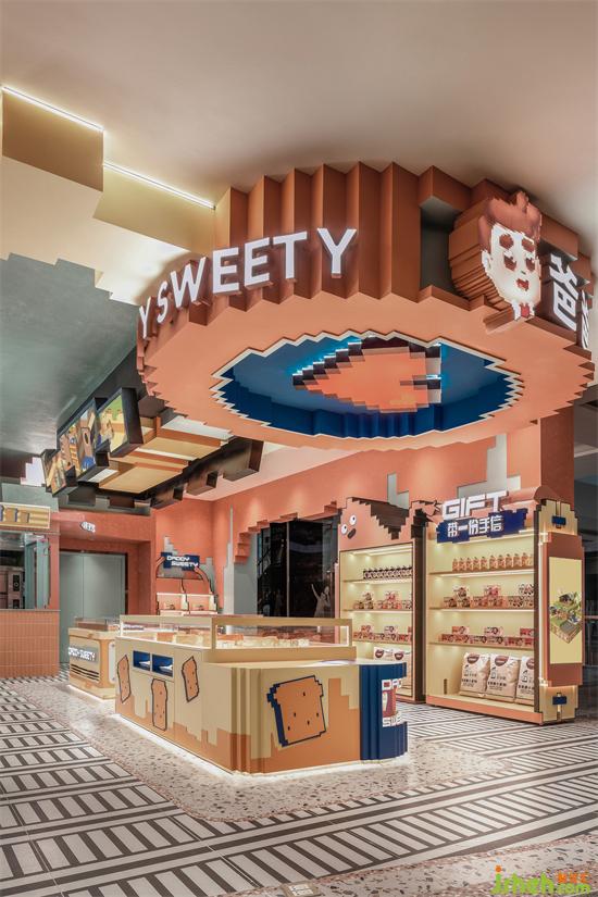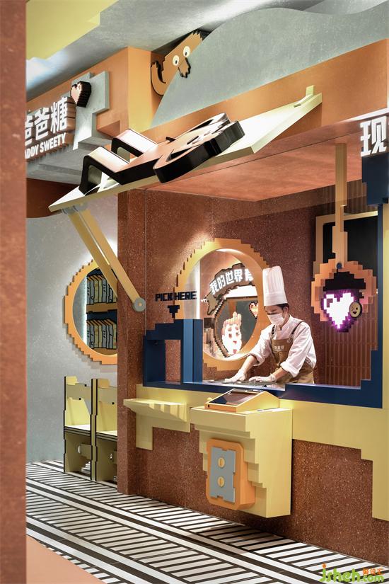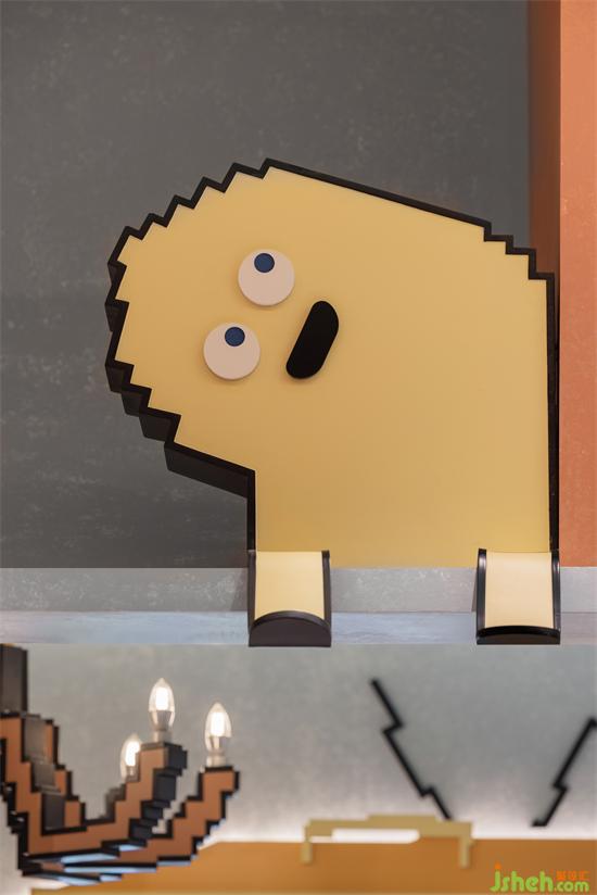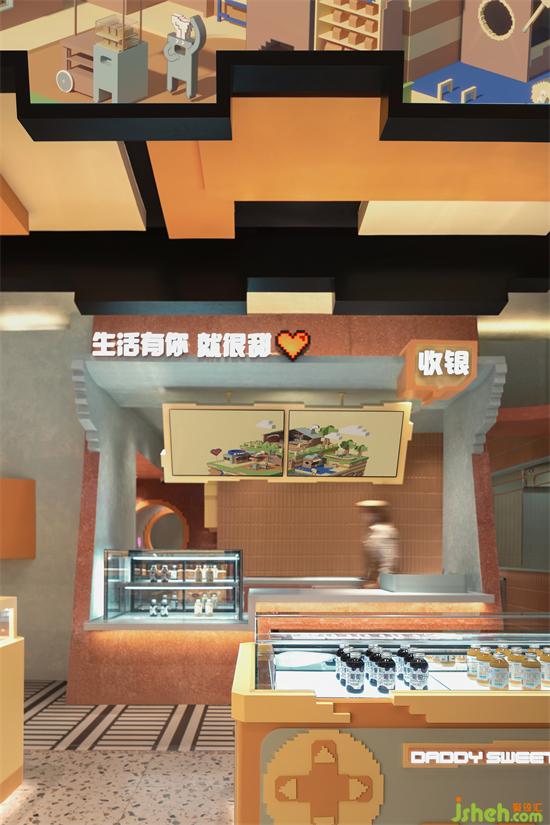 空間以立體方塊搭建組合而成,造型可愛生動,并融入了多種卡通元素,店鋪設計以積木搭建疊加的排列組合,讓空間實現從上到下、由里而外都彌漫著經典懷舊像素風,給人一種仿佛穿越到游戲世界的空間交錯感,激發(fā)心底探索的渴望。