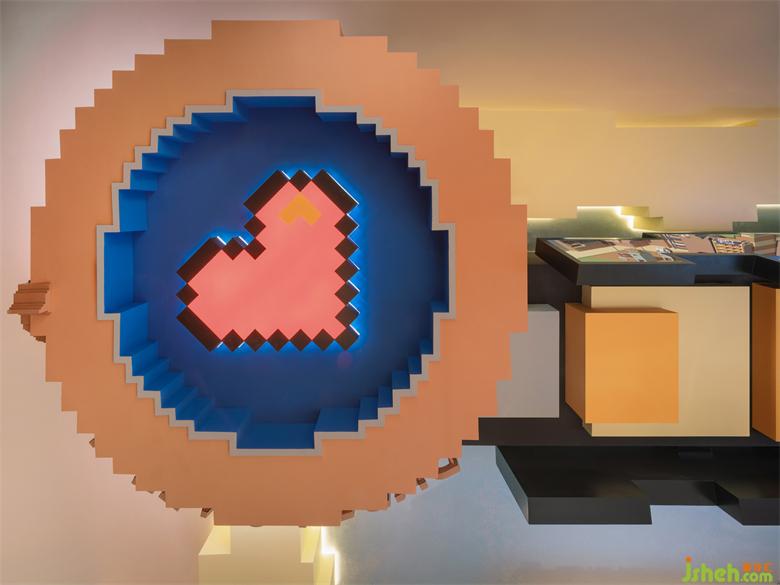 Composed of three-dimensional blocks with cute and vivid shapes, the space incorporates a variety of cartoon elements. Adopting a superimposed arrangement and combination method of building blocks, the entire space is filled with classic nostalgic pixels style, creating an interlaced sense of crossing into a game world, which stimulates the deep desire for discovery.